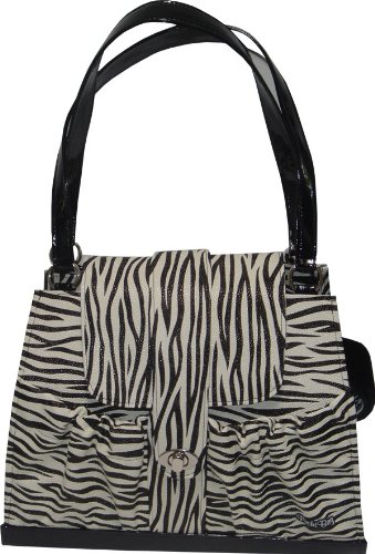 - Silver hardware, faux black patent trim, black fur and black mesh